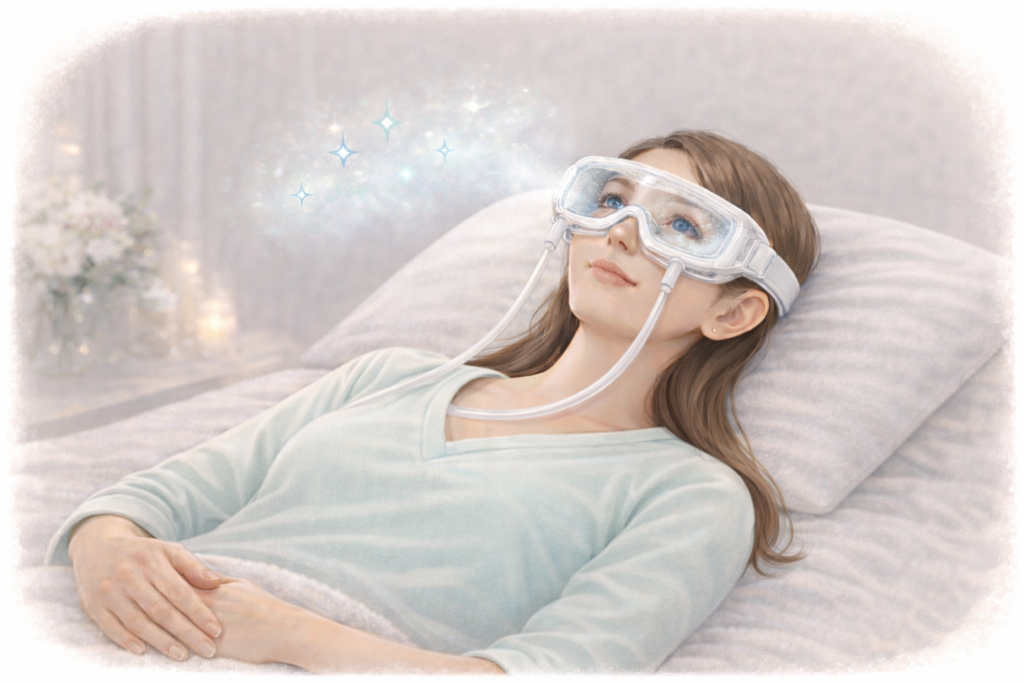 glycine式水素アイケアは、ゴーグルで結膜や角膜まわりをやさしく包み
